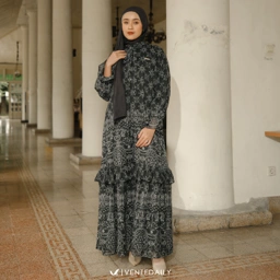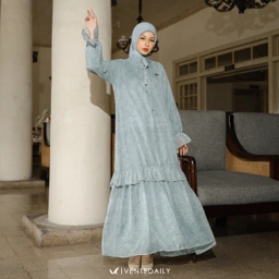 Detail gamis : Kerah shanghai, variasi tali leher, busui friendly dengan kancing, ujung lengan kancing