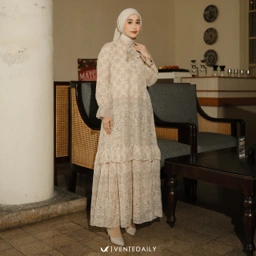 Gamis model terbaru dan kekinian dengan pilihan warna yang cantik siap jadi teman kondangan sampai lebaran. Model gamis dengan kombinasi tali leher yang manis dan tampak stylish saat dikenakan.